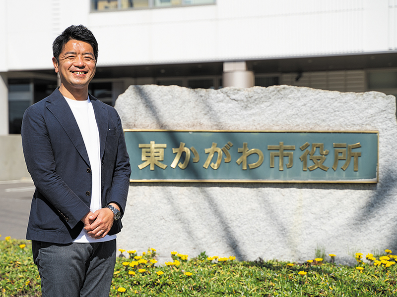 座右の銘は「恥ずかしがることが、一番恥ずかしいことだ」。東かがわ市のためなら、全身タイツや被り物も厭わない。東かがわ市の未来を見据え、第一線を走り続ける若き首長。