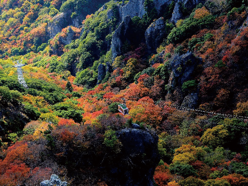 日本三大渓谷美として全国に知られる、瀬戸内海国立公園を代表する景勝地。山全体が燃えるように染まる美しい紅葉と瀬戸内の海岸美を一度に見ることができるのも魅力的。