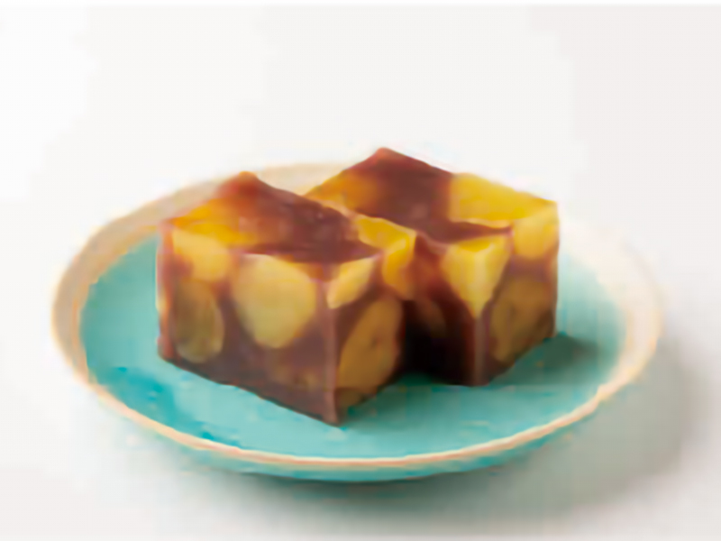 国産の黄金もち粟「ゆいこがね」の粟餅を、丹波栗のペーストで包みました。粟餅独特の舌触りとほのかな味わいが、優しい和栗の風味とともに見事に調和した秋の和菓子です。