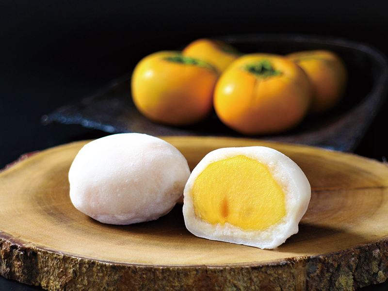 今年の柿大福は、香川県高瀬町の「刀根柿(とねがき)」で始まります。刀根柿の果肉は 程よい硬さがあり、果汁が豊富で まろやかな甘味が楽しめます。柿と大福の相性は かなり良く、想像以上に 美味しく仕上がっていますよ♪