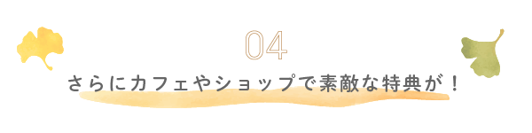地中美術館内にある地中カフェでは660円以上のデザート単品、780円以上のフード単品をご注文で「せとぼん」をお1人様1杯無料提供になる他、ベネッセハウス ミュージアムでは1,250円以上のフード単品をご注文いただいた方に限り、グリーンティーレモネードかレモンティーレモネードのいずれかをお1人様1杯無料提供。さらに、各ミュージアムのショップでは一部の商品と書籍を除く商品が5%オフに。その他、宮の浦・本村・ベネッセハウス周辺の店舗や宿泊施設で素敵な特典をご用意。詳しくはウェブサイトをcheck!
