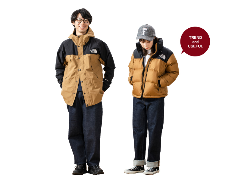 メンズ・レディース共に毎年人気の高いブランドの定番アウターを主役にしたコーディネート。