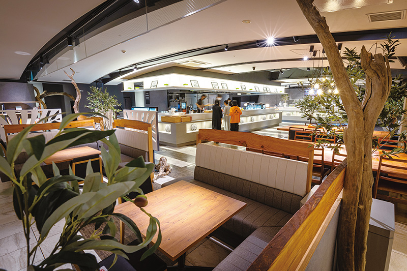 ノスタルジックな空気に包まれた屋内型商店街”THE CHELSEA AVENUE“。三密対策として、非接触型セルフオーダーシステムを採用した“フードコートスタイル”、厚労省が指定する換気能力、ソーシャルディスタンスを確保した大型ボックス席に加え、ルーフトップガーデン、リビングルーム(個室)7室などを配することで、より安全・安心な空間を構成している。かがわ安心飲食店認証制度も取得した安心の空間で身近な仲間と過ごす時間がココロに潤いをもたらしてくれるはず。