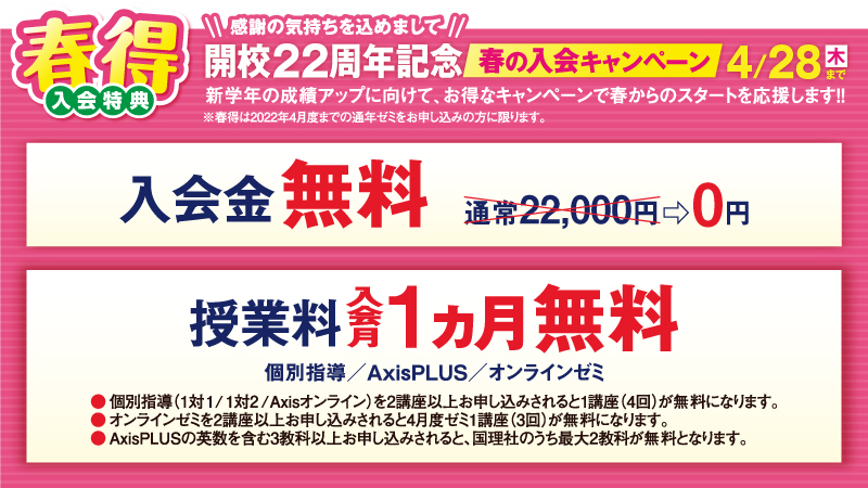 新学年の成績アップに向けて!まずはアクシスでお試しください