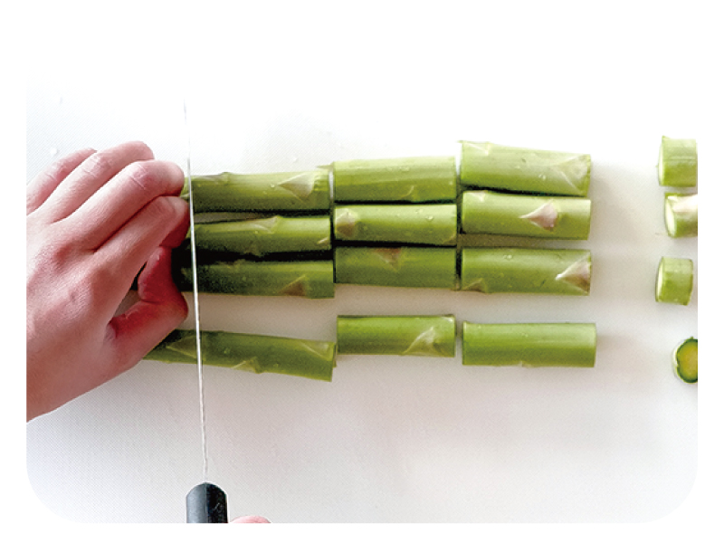 冷蔵庫の野菜室で立てて保存。2~3日で食べきれない場合はかために茹でて、冷凍保存するのがおすすめ。