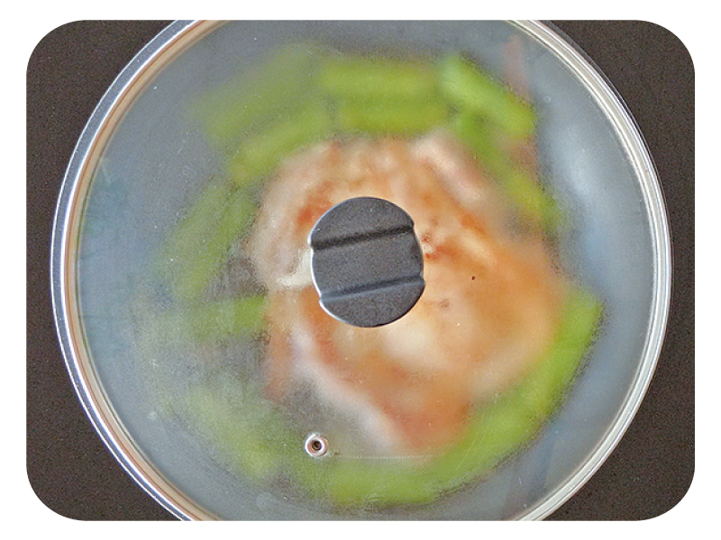 ①アスパラガスは蒸し焼きにした後、鶏肉よりも先に取り出す