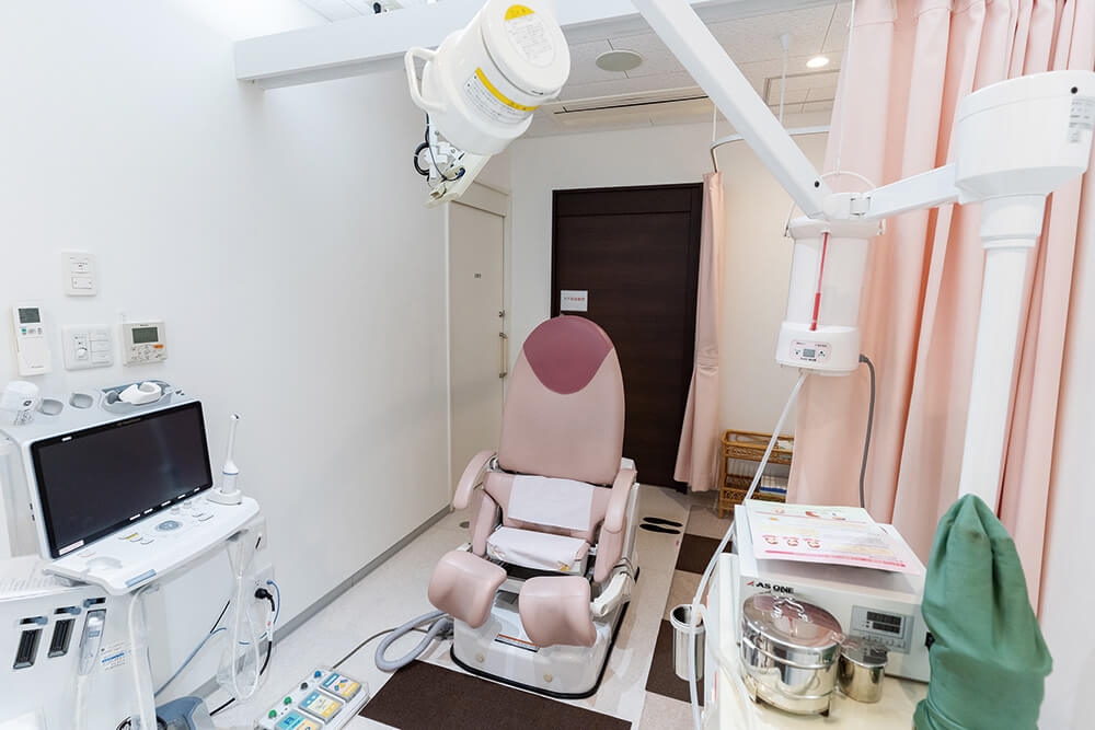 診察スペースは診察室と処置室に分かれており、超音波エコーなどの検査機器を取り揃えています。医師、スタッフ全員が女性なので安心して診療が受けられます。