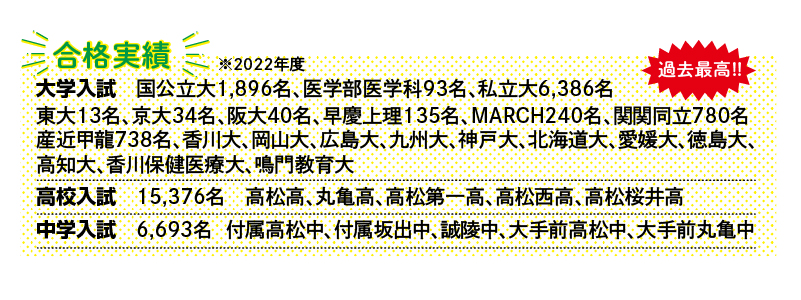 高松校、丸亀校、屋島校、屋島東校、三木校、木太校、多肥校、紫雲校、栗林校、太田校、仏生山校、大野校、円座校、香西校、国分寺校、志度校、坂出校、宇多津校、林校