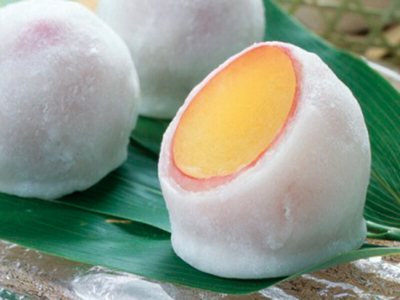 「大石早生(おおいしわせ)」の完熟したすももの果肉はやわらかく、果汁たっぷり、甘味と酸味と食感が大福と絶妙のハーモニーを奏でます。すももの酸味にはクエン酸が含まれており、疲労回復効果があります。