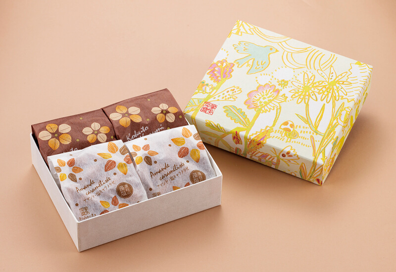 アーモンドを砂糖で煮詰めた「キャラメリゼ」の中に入れて、芳ばしくキャラメル色になるまでロースト。表面にまぶした「讃岐の藻塩」のまろやかな味わいと、カリっとした食感はクセになる美味しさです。