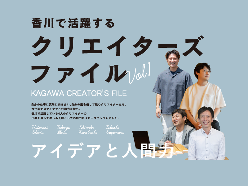 自分の仕事に真摯に向き合い、自分の道を信じて進むクリエイターたち。今企画ではアイデアと行動力を持ち、香川で活躍している4人のクリエイターの仕事を通して感じる人間としての魅力にクローズアップしました。