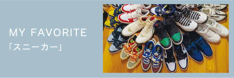 学生時代からずっと打ち込んでいるバスケットボールを通して“バッシュ”に出会い、そこからスニーカーにハマり、今では毎日のファッションのアクセントにも欠かせない存在に。100足を超えるコレクションは、レアなものでも気分に合わせて普段使いするのが塩田さん流。また、毎週水曜の夜は、社会人バスケットボールチームの練習に顔を出すのが忙しい日常の最良の気分転換。元々、建築の道に進んだのもバスケにしっかり取り組める高校に進学したことがきっかけなのだとか。