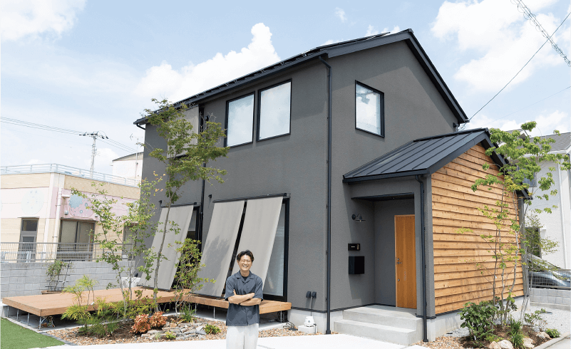 まさに子育て世代のど真ん中であるK様ご夫婦。デザインにも性能にもこだわりがあり、さらに当然のことだが予算も限られている。他社とのお話の中で諦めかけていた理想のお家づくり…。しかし「気さくで話しやすい塩田さんの柔軟な対応で、ほとんどの願いが叶いました。」とご主人。難しそうな内容でも知恵を絞ってアイデアを出してくれたり、連絡をしたらいつでも親身になって応えてくれる頼もしさ。そんな人柄にも大きな魅力を感じ、一緒に家づくりをしたいなと感じたそう。こうして完成したのがこちらのお家。