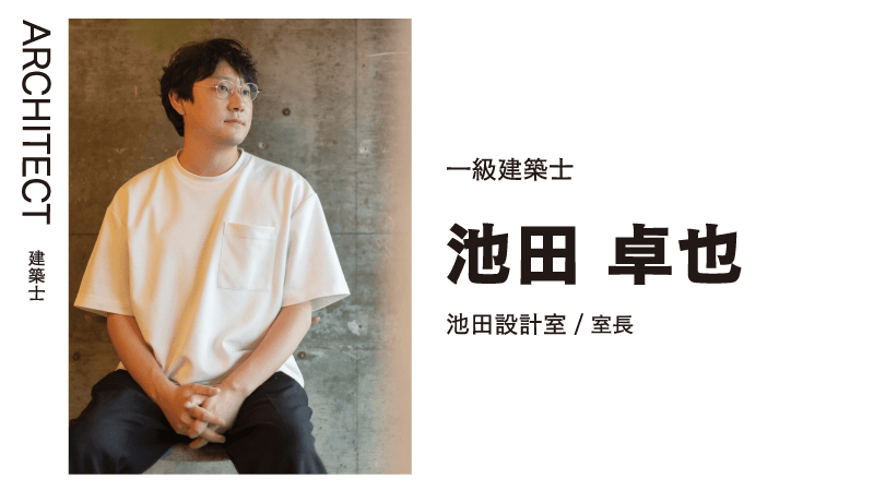 お客様とほぼ同世代、悩みや感覚を共有しながらお客様の希望に寄り添う提案に定評のある池田さん。幼い頃の実家の建て替えをきっかけに抱いた「建物を考える人になりたい」という漠然とした想いが明確になったのは大学3年生の頃。学生コンペや就職活動を通して、設計を仕事にしたいと設計事務所へ就職。フリーランス期間を経て27歳で独立、現在6年目を迎えています。
