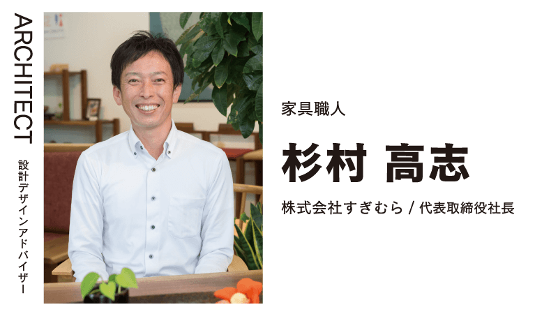 1980年観音寺市生まれ。2000年4月に漆樹彩館すぎむらに入社。2013年7月に先代から承継し株式会社すぎむらを設立。手作りにこだわり自社工場で制作した無垢材の家具や、イランから仕入れた手織り絨毯「ギャッベ」を販売。西日本トップクラスの在庫数を誇る。