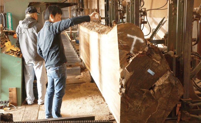 天然の無垢材ならではの良さ、表情は一つとして同じものはありません。板独自の特性や良さを生かすには、切り出し方にも知恵と経験が必要です。それは社員みんなで一緒に考えながら作るというのが楽しい面でありながら、非常に大変です。