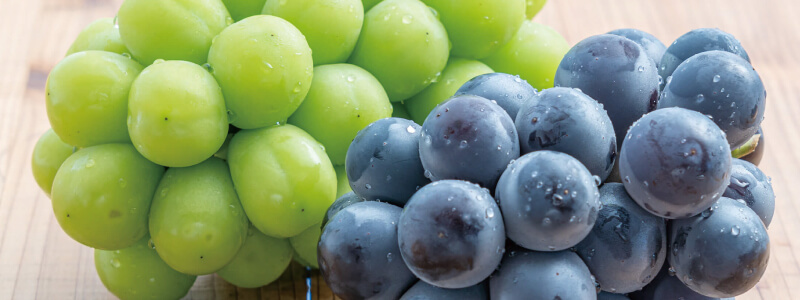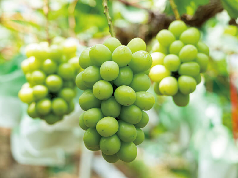 果皮が薄く、皮ごと食べられるシャインマスカット。マスカット系のブドウで、芳醇な香りは格別。
