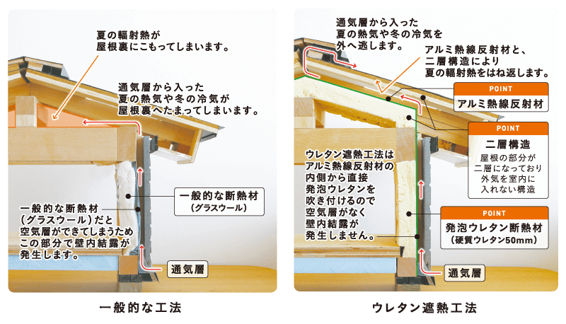 夏は輻射熱を跳ね返し冬は室内の温かい空気を逃がさないため、年中快適に過ごすことができます。