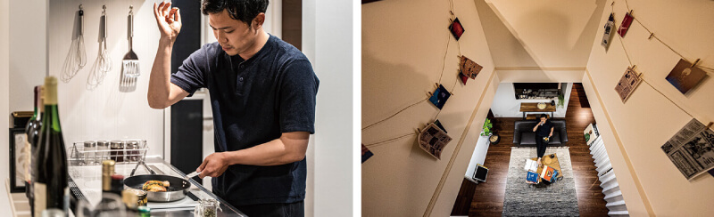 平日は、愛する家族のために遅くまで仕事をこなすパパの週末のお楽しみが、働く活力を充電する『俺TIME』。火力調整も簡単なIHグリルでのおつまみづくりや開放感抜群の吹き抜けのあるリビングでの映画鑑賞、趣味の釣り道具を仕舞っておく収納スペースだって、毎日を頑張る自分へのご褒美TIMEに大活躍!