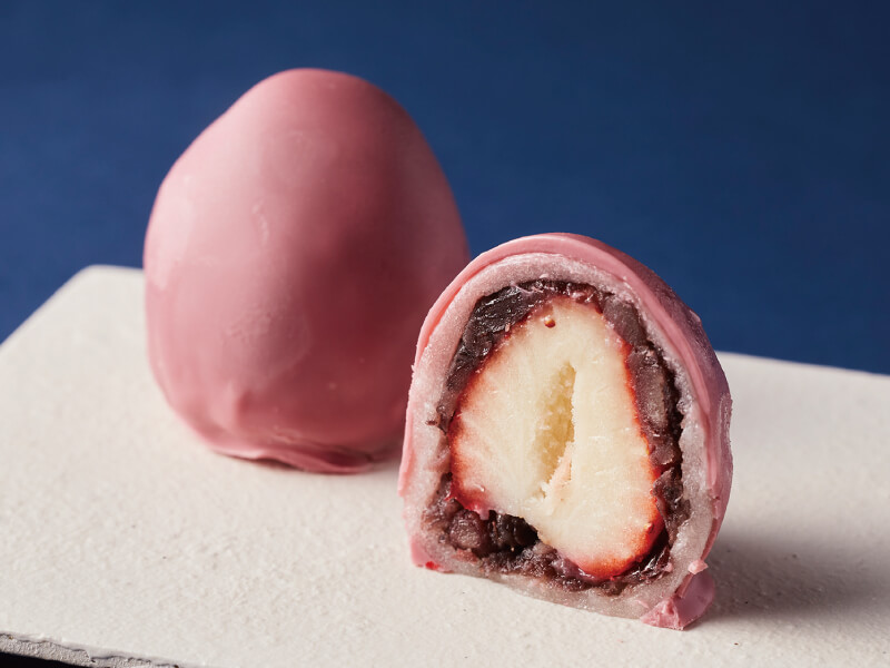 「ルビーチョコレート」を粒あんのいちご大福にコーティングしています。ルビーチョコの爽やかな味わいをお楽しみください。