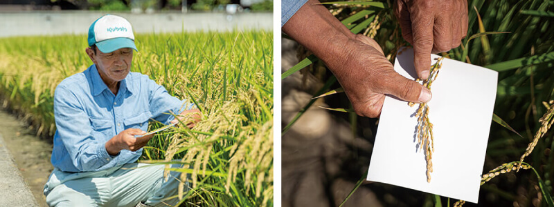 「中讃地域おいでまい生産者組合」部会長の松浦さんは、50年以上にわたりお米を栽培しており、自身も大のお米好き。約15haの田んぼのうち6haで「おいでまい」を栽培し、JA香川県の指導のもと、こまめな水管理を行うなど、試行錯誤しながら美味しいお米づくりに取り組んでいる。おいでまいマイスターでもある松浦さんの新米を美味しく炊くコツは、①素早くお米を研ぐ、②水をいつもよりおちょこ一杯分少なく入れること。また、炊飯器の保温機能を使わず、食べきれない分は別の容器で保存する方が、美味しく食べられるそうなので、ぜひ試してみては。