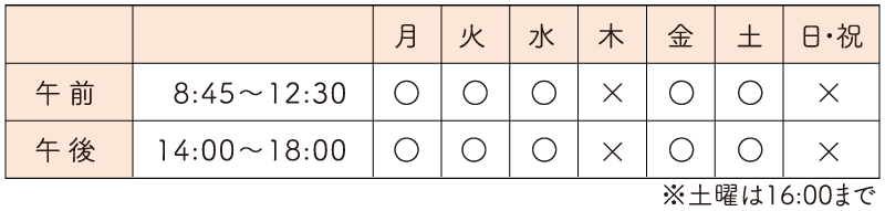 ※受付は午前12:20、平日午後17:50、土曜日午後15:50まで