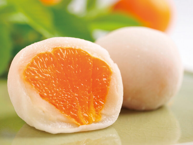 トロリとろける食感、濃厚でジューシーな味わい、みずみずしいオレンジの香り、文句なしの美味しさは まさに“柑橘の大とろ”と呼ぶに相応しい「せとかみかん」。皮も柔らかく内皮ごと食べられるので大福にはぴったりの相性です。