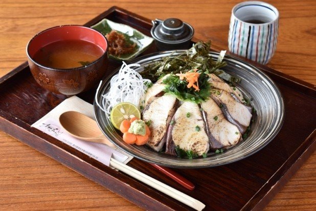 そんな嶋野さんが飼育した「オリーブハマチ」は、高松市庵治町にある『珈琲 あるぷす』でいただくことができます!10月~12月末頃まで提供される「オリーブハマチの炙り丼」は、身をサッと炙ることで香ばしさと脂の旨味を堪能することができます。生(刺身)で食べても美味しいですが、嶋野さんのおすすめはやっぱり”炙り”なのだとか!一度味わえば、「オリーブハマチ」のトリコになること間違いなし!