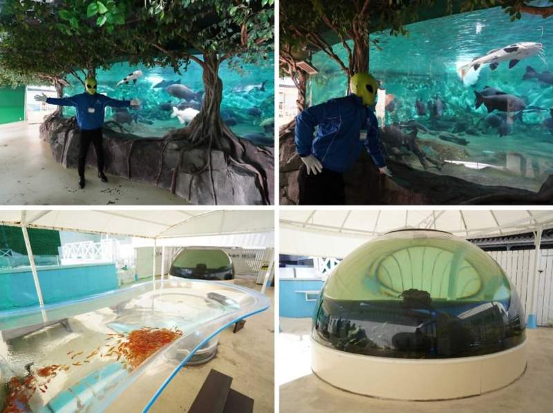 ▲世界最大級のドーム型水槽や最新のJ型水槽など、様々な水槽を設置。