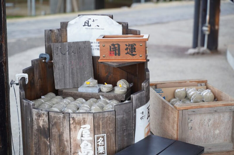 ▲開運厄除けや家内安全、商売繁盛など、願いを込めてかわらを投げると良いとされている。