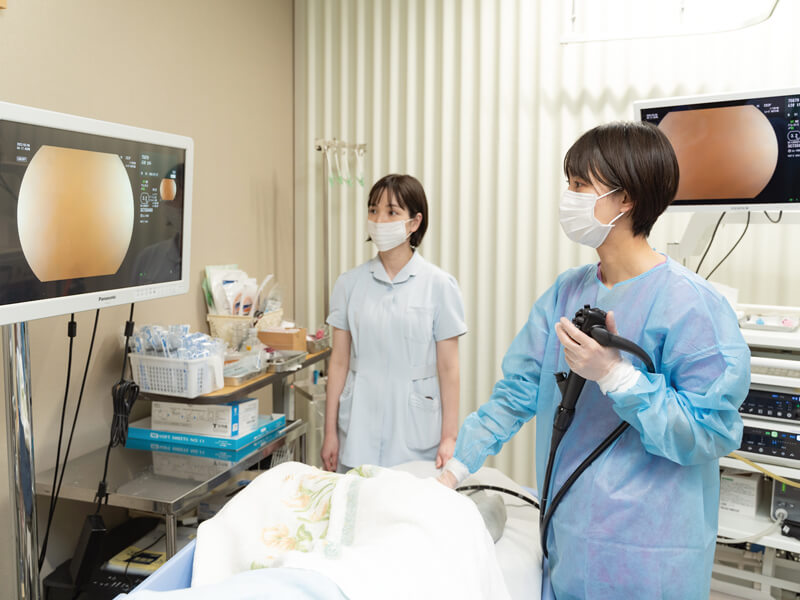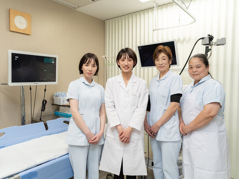 県内では珍しい「女性内視鏡外来」を設け、医師・内視鏡技師ら全て女性スタッフで対応しています。内視鏡検査は鎮静剤を選択することで寝ている間に楽に検査が可能です。