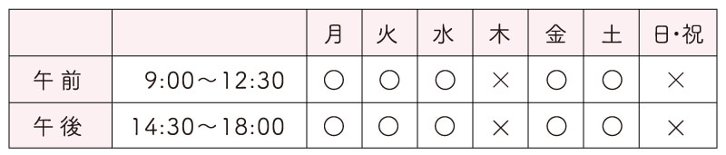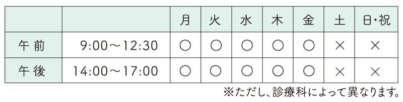 水曜午後、土曜午後、日曜、祝日は休診