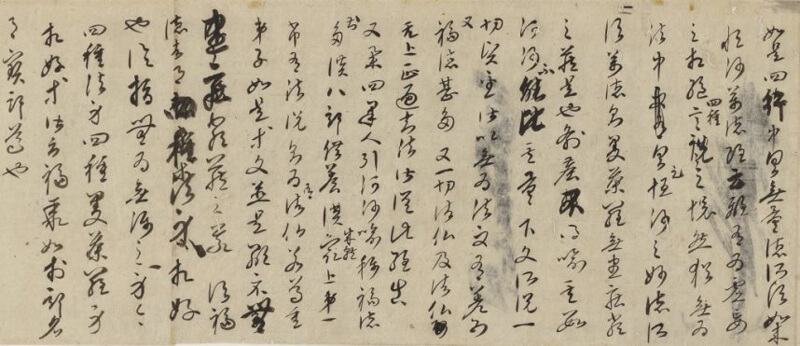 ▲国宝 三十帖冊子 仁和寺蔵 場面替えあり。経典類を書き写した空海の小さなノート。唐の写経生などの筆と空海自身の筆が混ざる。