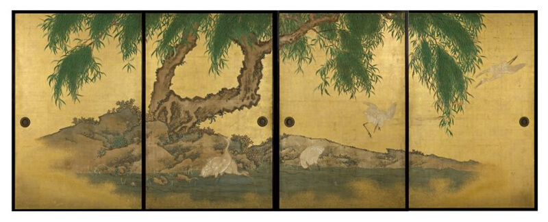 ▲岸岱「柳に白鷺の図」
