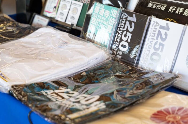 ▲御朱印帳やTシャツなど、弘法大師空海御誕生1250年記念グッズが登場。