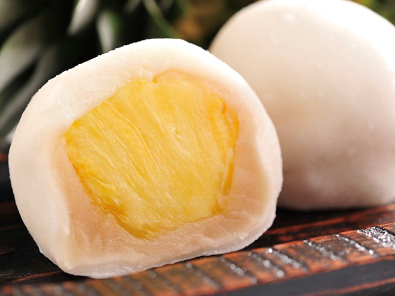 フィリピン産のプレミアムパインをフレッシュなまま大福にしました。さわやかなパイナップルの味をお楽しみください。