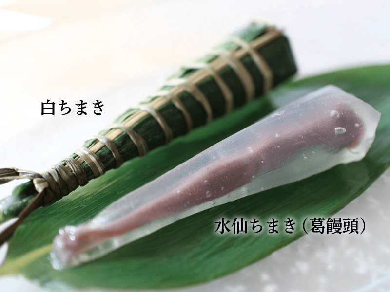 米粉で作った白ちまきとこしあん入りの葛製水仙ちまきを笹の葉で包み、毎朝蒸し上げています。