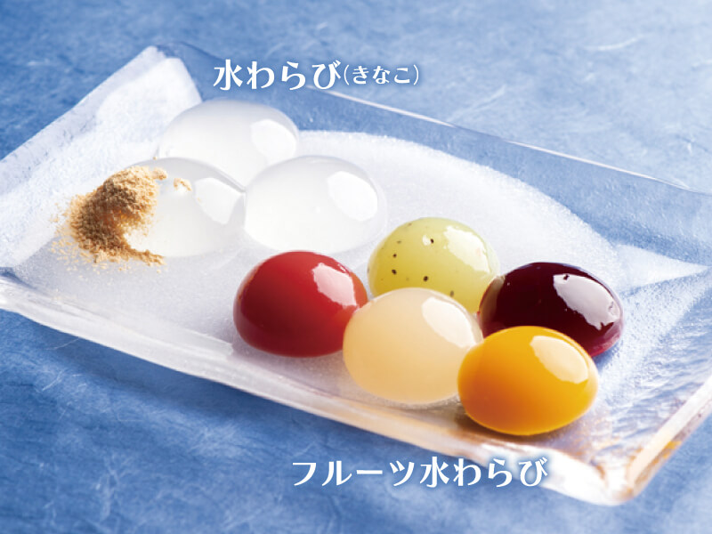 水わらび(きなこ) 5個入 980円・フルーツ水わらび 5種セット 1,130円