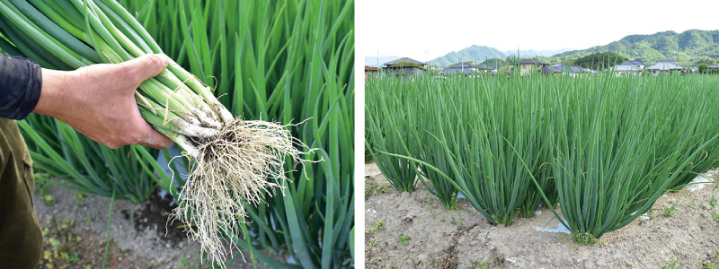 就農6年目の荒井さんは、東かがわ市の農地約3ヘクタールで年間約35トンを収穫。周年栽培しており、夏場と冬場でマルチシートを使って地温を調節し、生育適温に近づける工夫をしている。また、生育に応じて必要な養分を与える「追肥」や、土壌微生物が持つ土壌の栄養バランスを保つ役割を活かして、病気に負けない丈夫な青ネギを栽培することを心掛けている。荒井さんおすすめの食べ方はキムチの素と青ネギで作る「青ネギキムチ」。ぜひ試してみて!