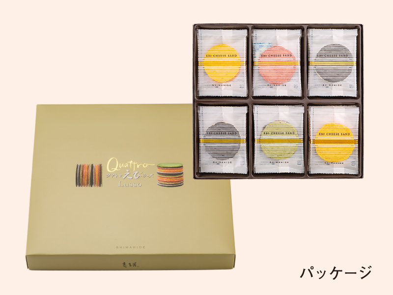 イタリア語で“贅沢”を表す「ルッソ」と名付けられた、特別なえびせんべい。日本、フランス、中国、イタリアの食材と色彩がフュージョンして生まれた、魅惑の大人のえびチーズサンドです。トリュフとコンソメ、バルサミコとマンゴーとピスタチオ、中国山椒と松の実と辣油、醬油と山葵と椎茸、一皿の料理のようにリッチな味わいを奏でる4つの贅沢なフレーバーをお楽しみください。贈り物や手土産にもお勧めです。海老の老舗・志満秀が自信をもって大人の味をお届けします。