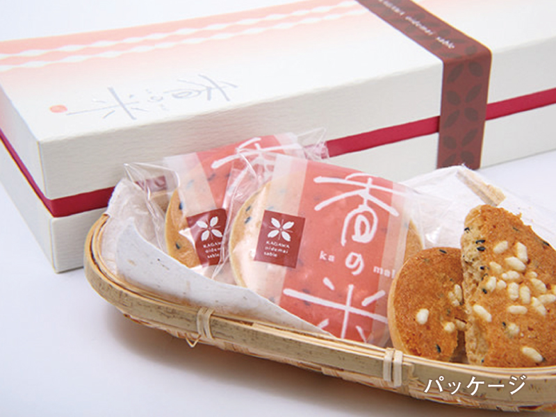 看板商品の「はねフィーユ」をはじめ、素材のスイーツが、幅広い層に支持されている、香川県を代表する人気パティスリー。焼菓子にも定評があり、「香の米」は香川生まれのお米「おいでまい」の米粉、坂出の「瀬讃の鹽(せさんのしお)」、創業150年の小豆島ヤマクロ醤油の「鶴醤(つるびしお)」など、こだわりの県産材料を使ってサブレに仕立てた逸品!天然樽仕込みの本格醤油「鶴醤」の香りとコクが味の決め手になっており、最中風のサクサクした食感のサブレは塩キャラメルのような甘じょっぱい味わいがクセになる美味しさ。子どもから大人まで幅広い世代に愛される人気の郷土土産。ぜひ、大切な人へ贈り物に。