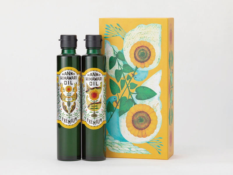 従来の「まんのうひまわりオイル」からオレイン酸、ビタミンEの含有量アップで、さらに健康を実感できるPREMIUMオイル!イラストレーター福田利之さんデザインの素敵なギフトボックスでお届け。ギフトにピッタリです♪