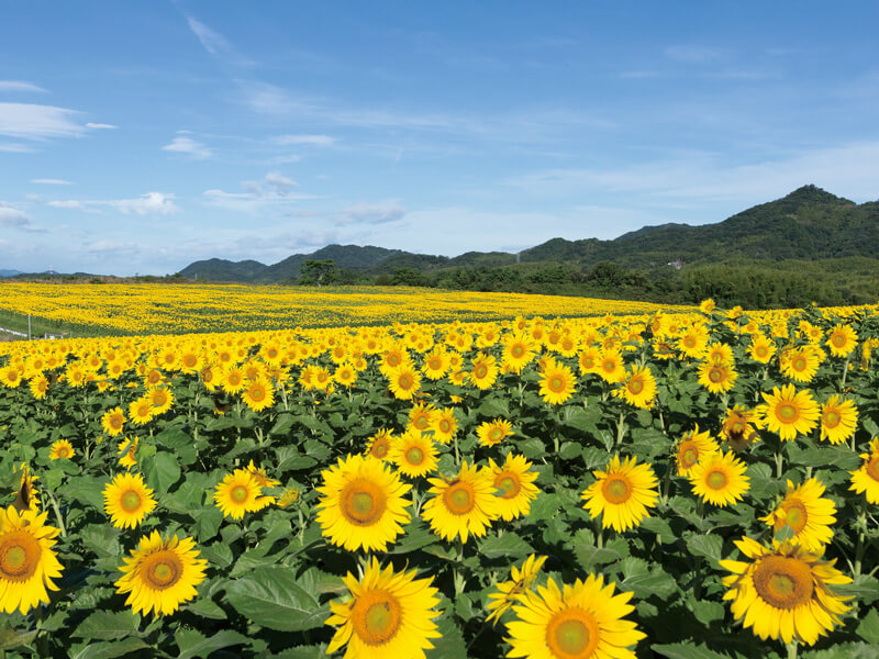 まんのう町では、毎年7月に120万本のひまわりが満開に。