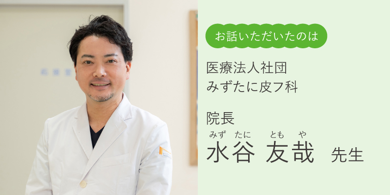 【Profile】徳島大学医学部卒業、徳島大学皮膚科助教、四国こどもとおとなの医療センター皮膚科医長を経て、2019年みずたに皮フ科開院。兵庫県出身
