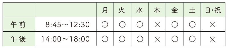 ※受付終了時間は、午前12:20、平日午後17:50、土曜日午後15:50まで