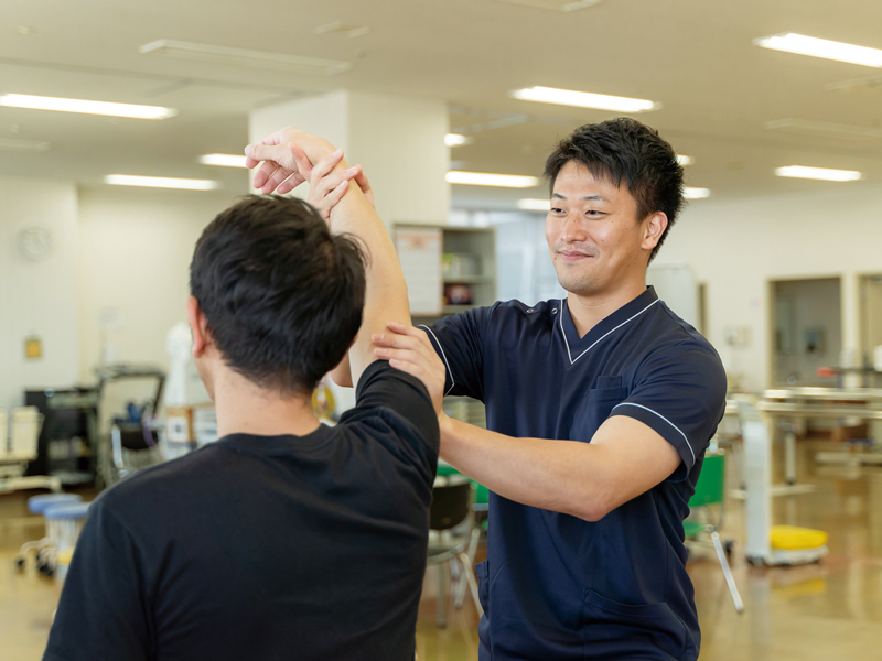 腱板断裂の痛みを和らげるための運動は、当院の理学療法士によるリハビリとセルフトレーニングの指導の両方で進めます。回復には半年程度かかることもあります。肩の痛みが2週間ほど続く場合は、できるだけ早く専門医を受診しましょう。