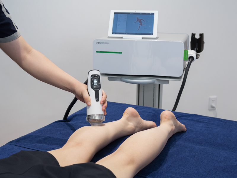 体外衝撃波(ショックウェーブ)治療とは、衝撃波を皮膚の上から患部に照射する治療です。従来から腎臓結石を破砕する治療に利用されていますが、近年では整形外科分野においても応用され、足底腱膜炎、テニス肘(上腕骨外側上顆炎)、頑固な肩こり、慢性腰痛などの通常の治療で改善しにくい痛みの治療に使用されています。当院では、最新の集束型体外衝撃波治療装置を導入しています。体への侵襲が少なく、患部にピンポイントに照射することが可能なため、若年者のスポーツ障害から高齢者まで安全に痛みの治療を行うことができます。