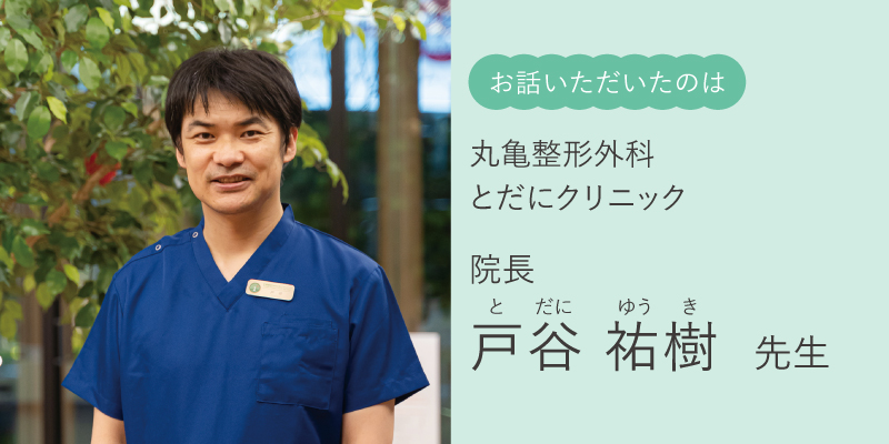 【Profile】2001年岡山大学医学部卒業。京都府立医科大学整形外科、明治国際医療大学附属病院、江戸川病院などを経た後、シンガポールのNovena Medical Centre NPC, Singaporeでアジア最先端の医療を学ぶ。2022年4月とだに整形外科開院。