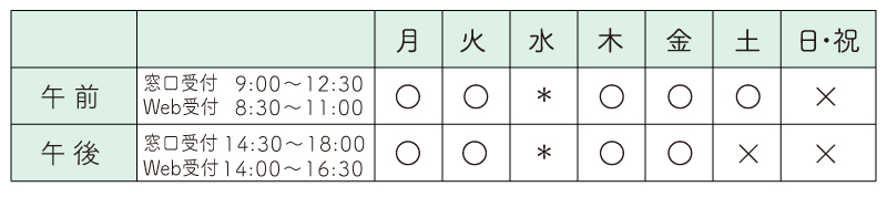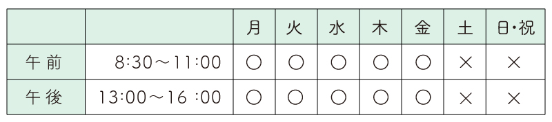 <受付時間> 月~金曜日8:30〜11:30、13:30〜16:00