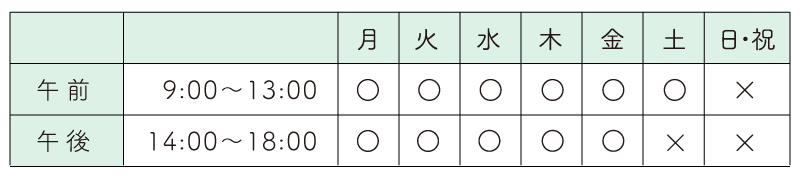 ※土曜は午前のみ